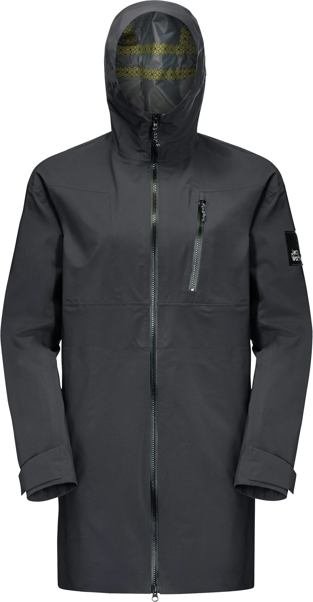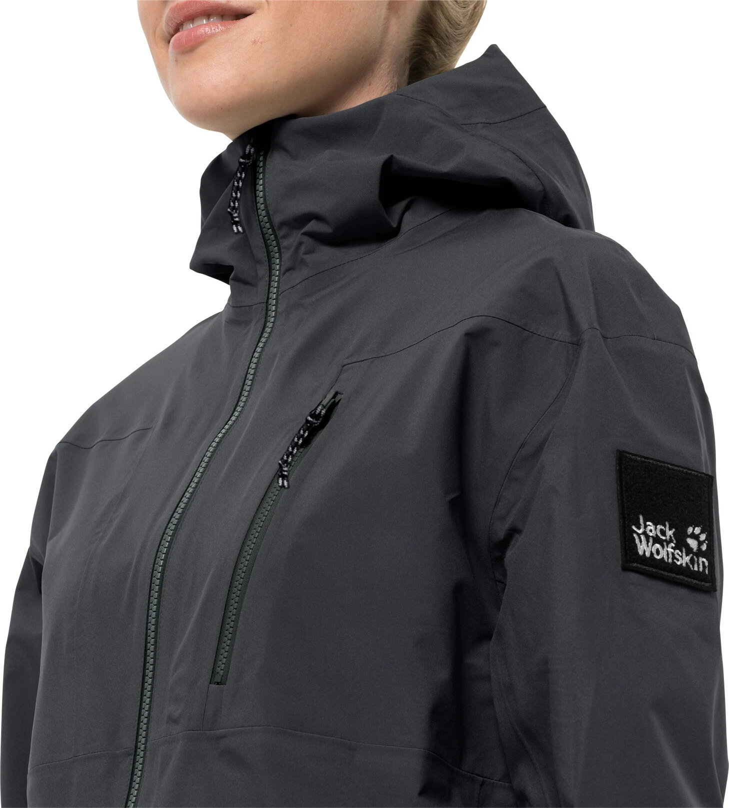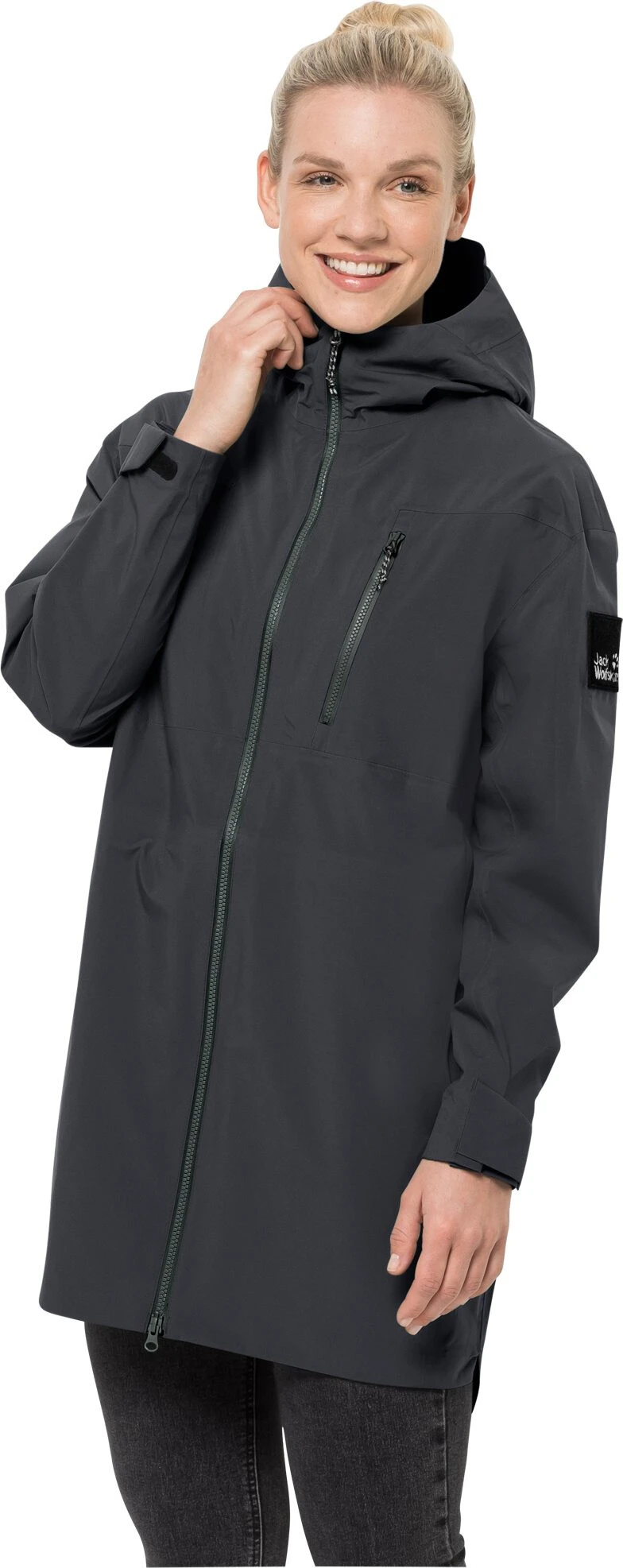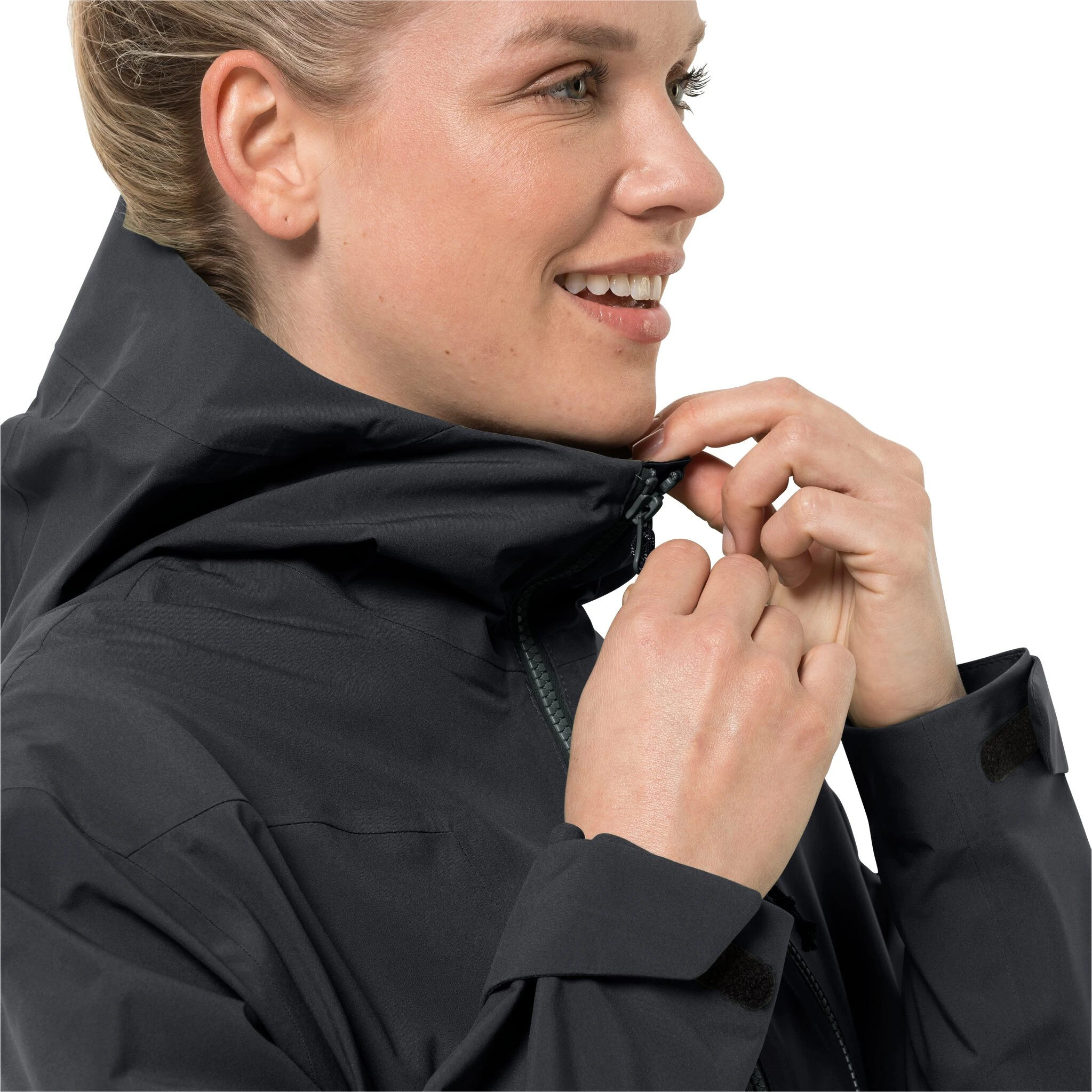 Hij is gemaakt van ons milieuvriendelijke allweathermateriaal TEXAPORE ECOSPHERE, dat we van gerecycled polyester maken. Het is absoluut waterdicht en winddicht. Bovendien voelt het soepel aan en is zo goed ademend dat je je daarin de hele dag super voelt.
